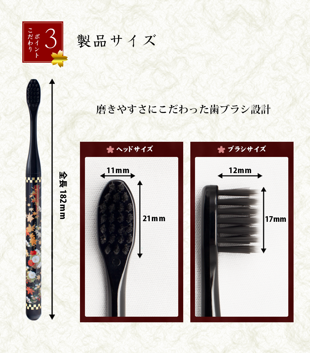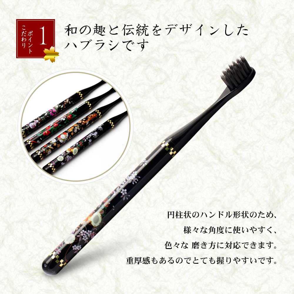 ◀商品案内に戻る 和乃煌はぶらし ・様々な角度で使いやすいポール型ハンドル ・和の趣と伝統をデザインしたハブラシです ・備長炭配合(超極細毛&フラット毛)で歯垢をスッキリ除去 基本情報 商品名 和乃煌はぶらし 商品コード (さくら)513400(もくれん)513410(もみじ)513420(つばき)513430 カラー さくら、もくれん、もみじ、つばき 生産国 日本製 家庭用品品質表示法に基づく表示 柄の材質 ポリエチレンテレフタレート 毛の材質 飽和ポリエステル樹脂 毛のかたさ ふつう 耐熱温度 60度 生産国 日本
